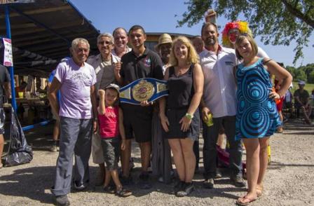 Toto le Cloxn avec Sébastien MADANI, champion du monde WBF de boxe anglaise super welter