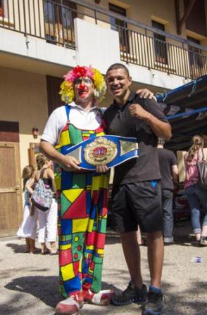 Toto le Cloxn avec Sébastien MADANI, champion du monde WBF de boxe anglaise super welter